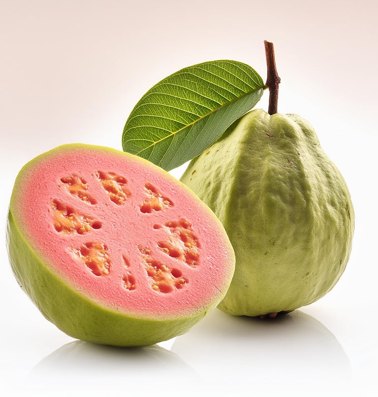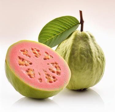La guayaba es una fruta tropical o subtropical conocida por su sabor dulce y ligeramente ácido, y su aroma característico. Generalmente es de forma redonda u ovalada, con piel que puede ser verde o amarilla, y pulpa blanca o rosada con muchas semillas pequeñas. Es rica en vitamina C y fibra, y se consume fresca, en bebidas, mermeladas, entre otros.