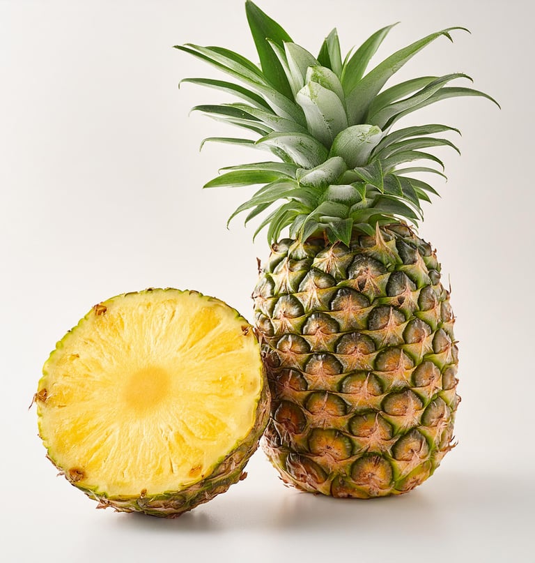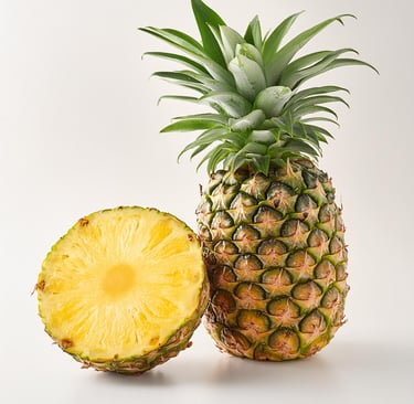 La piña tropical, cuyo nombre científico es Ananas comosus, es una fruta tropical originaria de Sudamérica, conocida por su forma ovalada, piel escamosa y pulpa jugosa de sabor dulce y ácido. Es rica en vitaminas, minerales y fibra, y contiene una enzima llamada bromelina, que ayuda a la digestión.