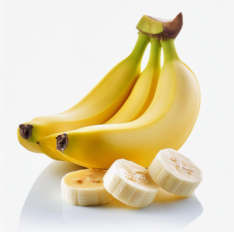El plátano es una fruta tropical, alargada y ligeramente curvada, con una cáscara amarilla que se pela fácilmente y una pulpa blanca o amarillenta, carnosa y dulce. Existen diferentes variedades de plátano, pero en general, se caracterizan por su forma, color y sabor, que puede variar según la madurez.